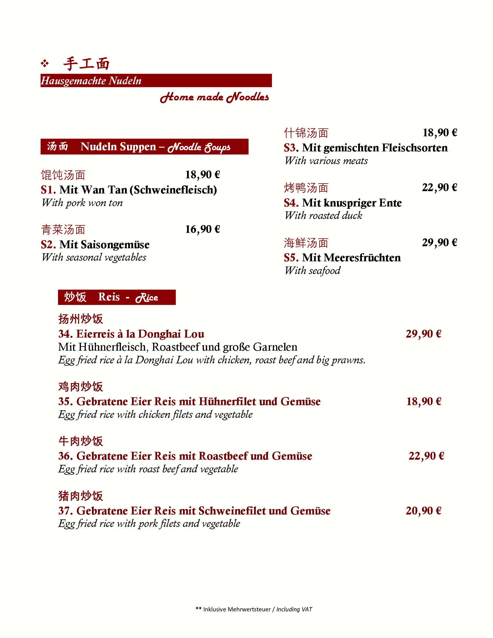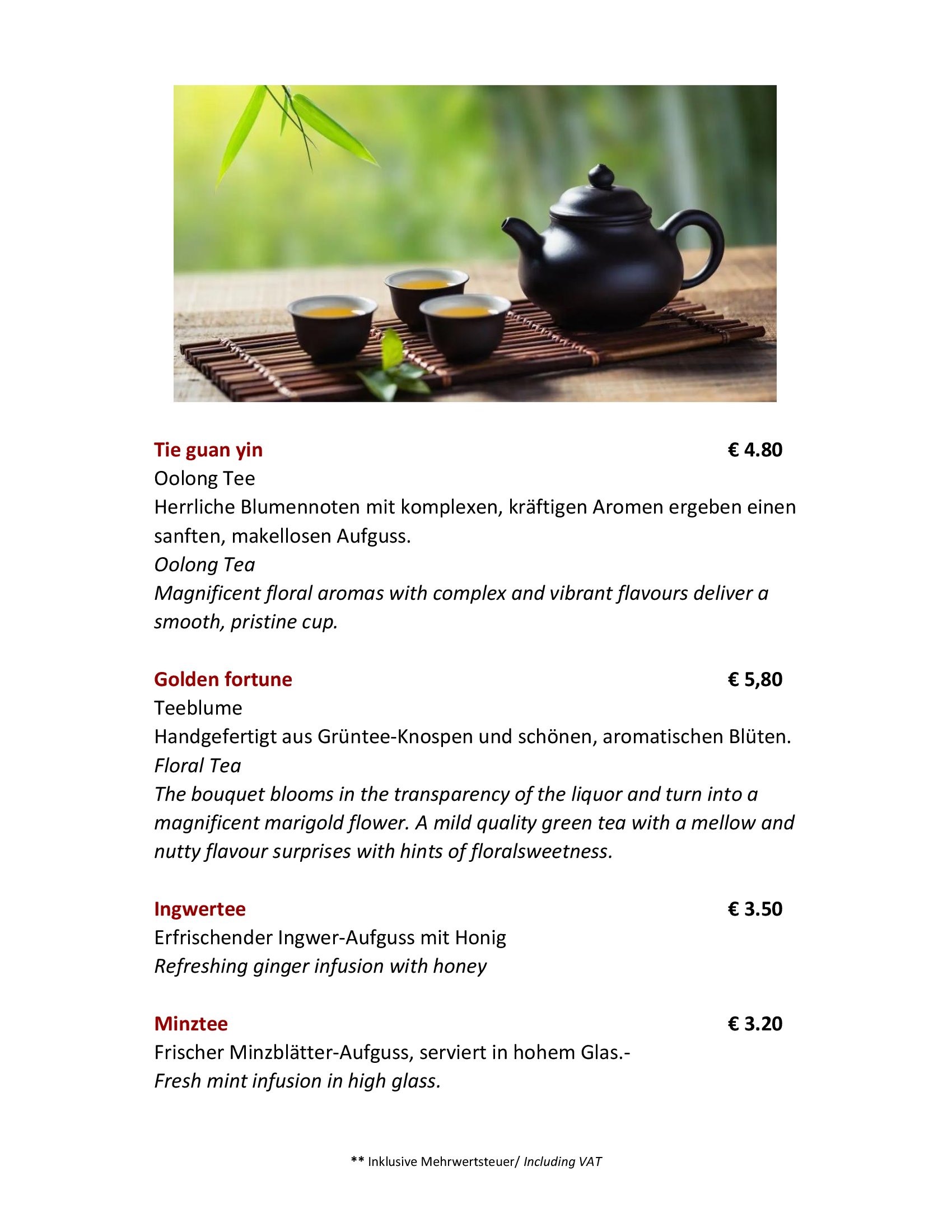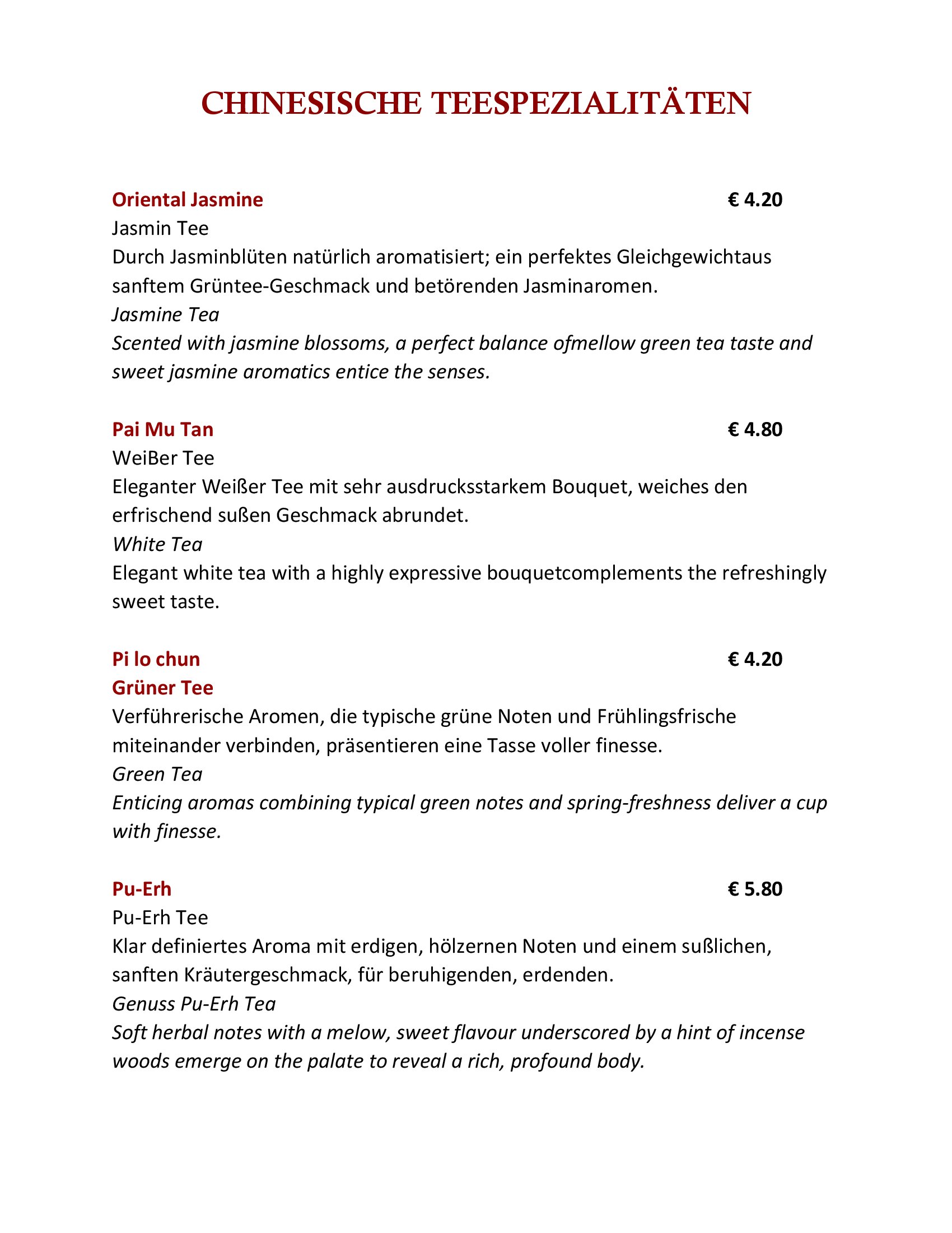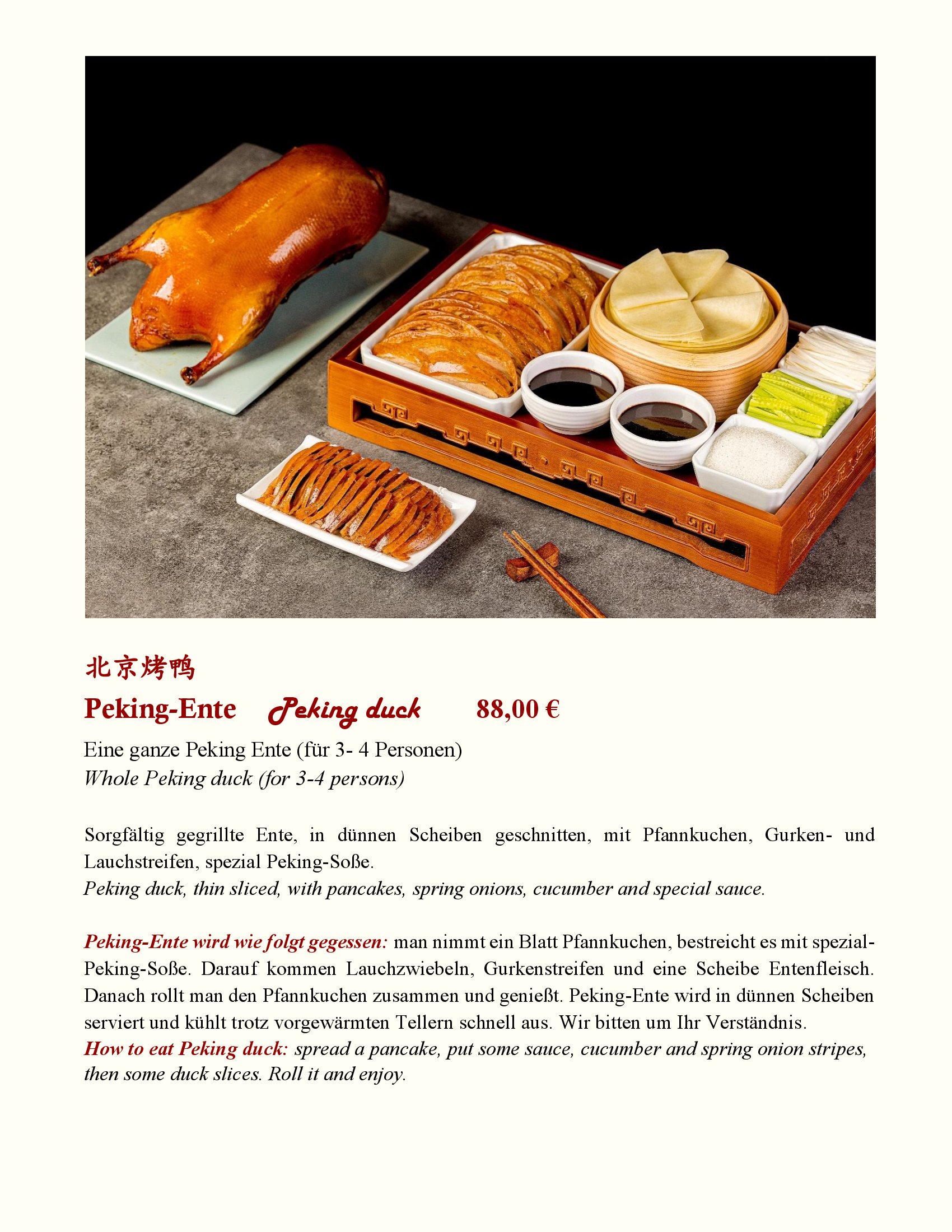 In Chinas hochbedeutender Kultur hat die Kochkunst eine über Jahrhunderte fortgeschriebene Tradition. 23 Provinzen liefern im Reich der Mitte kulinarische Köstlichkeiten und genussreiche Vielfalt. Zwei besonders profilierte Zentren chinesischer Esskultur sind Sichuan und Kanton. An diesen beiden Regionen orientiert sich unsere Küche.