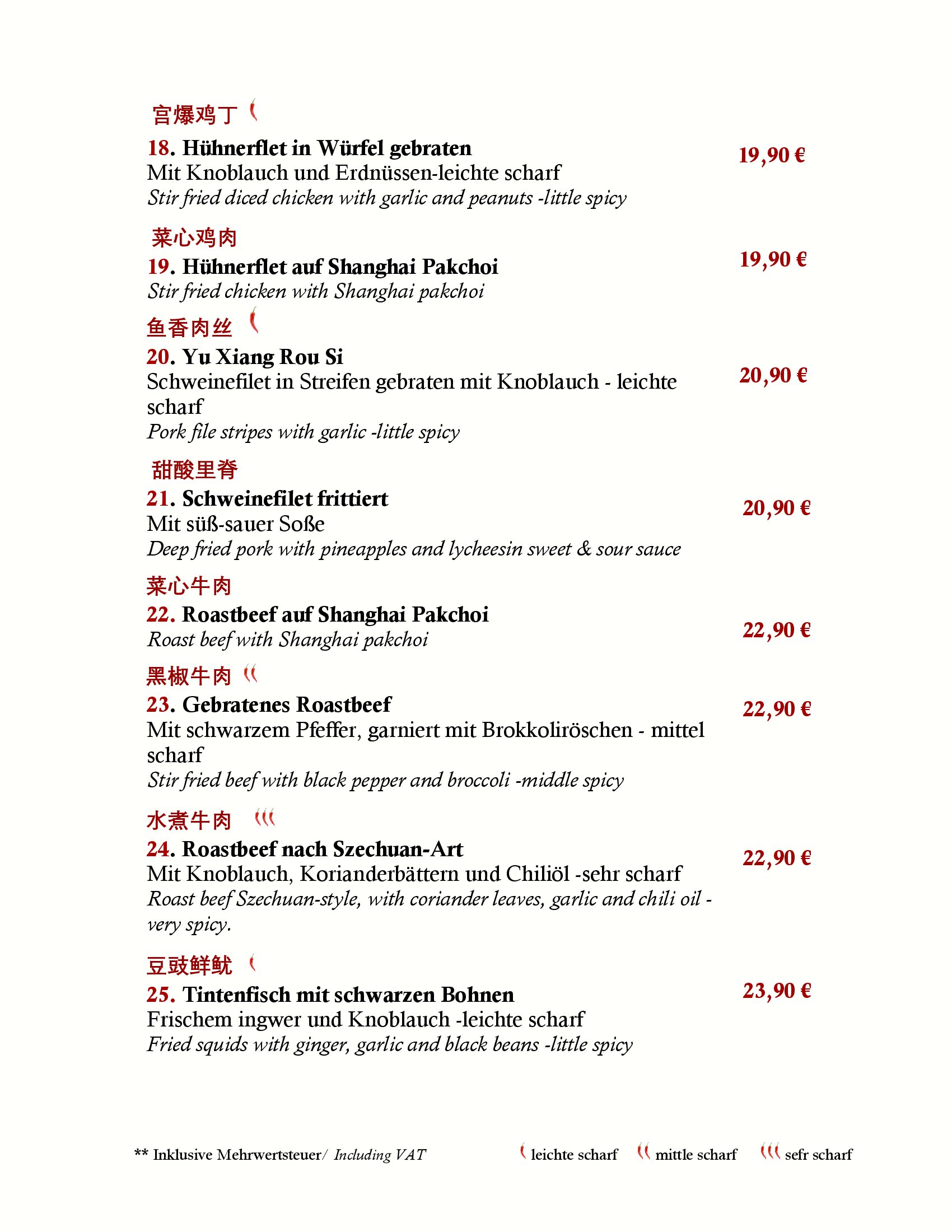 Sichuan steht für besonders pikante Gerichte. Die dortigen Rezepte basieren auf intensiven Gewürzen. Deren Schärfe setzt spezifische Akzente, ohne den aromatischen Charakter der stetsfrischen Zutaten zu überlagern. It Gerichten der Kantonesischen Küche werden von uns so variantenreiche wie ausgewogene Gaumenfreuden offeriert.